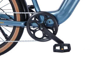 Santa Monica is outfitted with Tektro hydraulic disc brakes and industry-leading 203mm rotors, ensuring smooth and safe braking. With this advanced braking system, riders experience enhanced control and confidence on every journey.