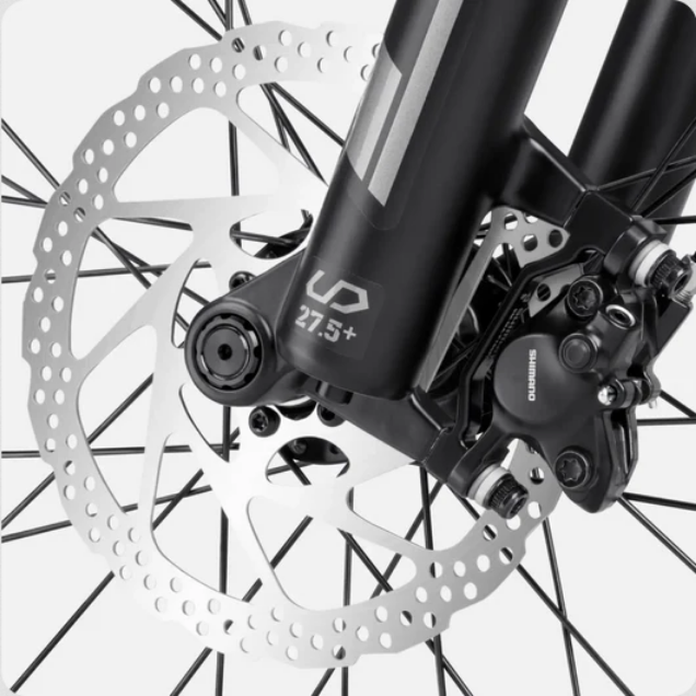 Equipped with SHIMANO 180mm hydraulic disc brakes, experience superior braking power that provides ultimate control and confidence under any riding condition.